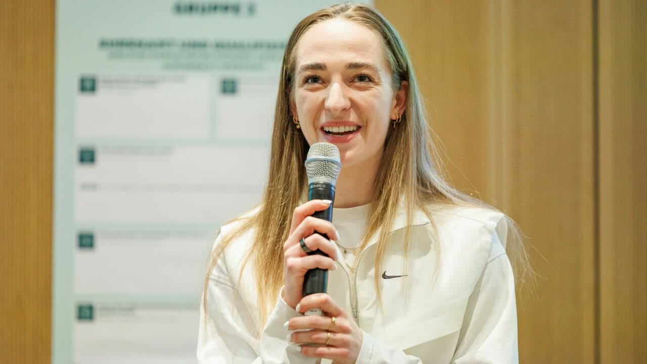Mit Sophia Kleinherne war eine Nationalspielerin aus dem FLVW Gast bei der Talkrunde [Foto: Friso Gentsch].
